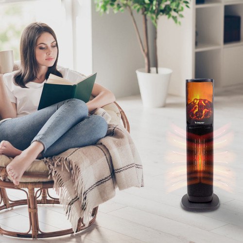 Aerotermă elegantă cu ventilator tip turn, cu elemente de încălzire ceramice, cu efect puternic de încălzire și consum redus.