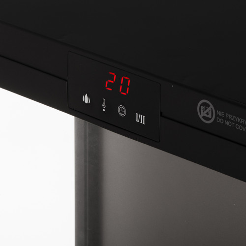 Cu două niveluri de putere de încălzire (1000W și 2000W) și un termostat reglabil (15-38°C), șemineul își reglează automat puterea de încălzire în funcție de setările tale, asigurând confort și eficiență energetică. Ecranul LED tactil și telecomanda oferă confort maxim.