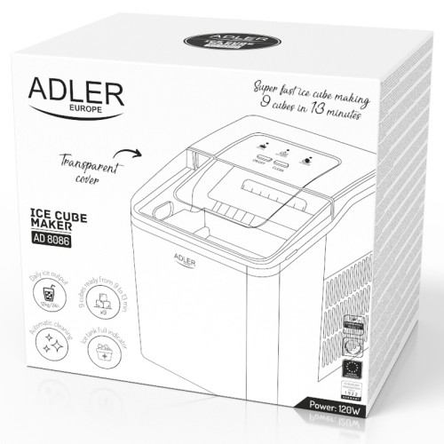 Aparatul de gheață AD 8086 poate face până la 9 cuburi de gheață într-un ciclu, oferind suficientă gheață pentru majoritatea ocaziilor. Aparatul este echipat cu o funcție de monitorizare a nivelului apei. Când rezervorul de apă este gol, aparatul de gheață vă va informa automat să umpleți apa. Nu va mai trebui să verificați manual nivelul apei sau să vă faceți griji cu privire la oprirea producției de gheață. Primul lot de 9 cuburi de gheață va fi gata la 9 până la 13 minute după pornirea mașinii.
