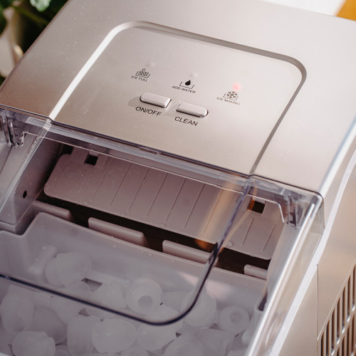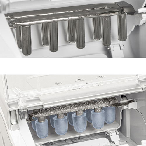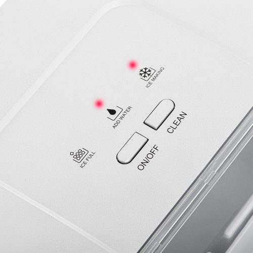Indicator rezervor de gheață plin - dispozitivul are un rezervor care colectează gheața preparată cu o capacitate de 0,6 kg - când acest rezervor este plin, aparatul de gheață vă va anunța că trebuie golit