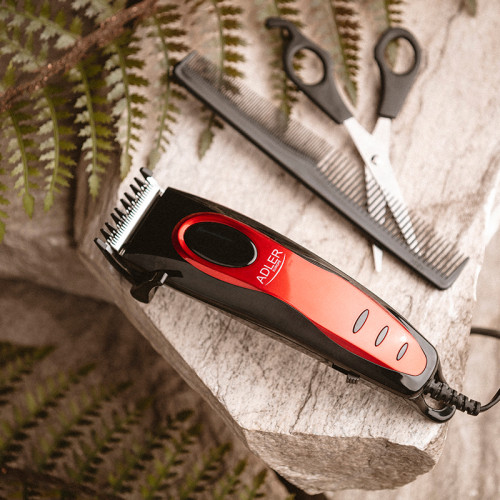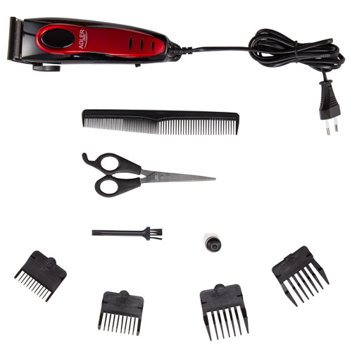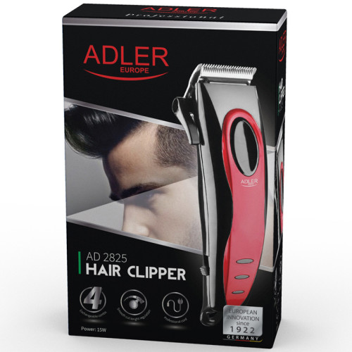 Aparatul de tuns AD 2825 este un echipament profesional pentru utilizarea în saloanele de coafură, precum și pentru uz casnic pentru utilizatorii care caută soluții solide și funcționale. Are lame durabile din oțel, asigurând o utilizare pe termen lung, și 4 atașamente înlocuibile care permit reglarea lină a lungimii de tăiere. Cablul mai lung decât cel standard (1,9 m) vă permite să operați cu ușurință aparatul de tuns în timpul tăierii.