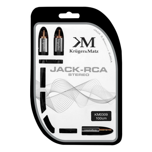 Cablu jack stereo 3.5 mm tata - 2 x RCA tata, lungime 1 m, marca Kruger&Matz.