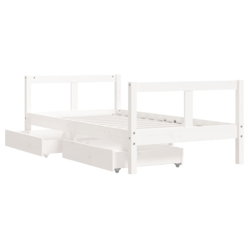 Cadru De Pat Copii Cu Sertare, Alb, 80X160 Cm, Lemn Masiv Pin