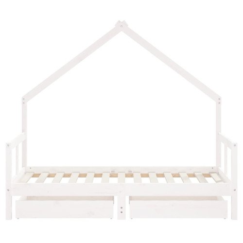 Cadru De Pat Copii Cu Sertare, Alb, 80X160 Cm, Lemn Masiv Pin