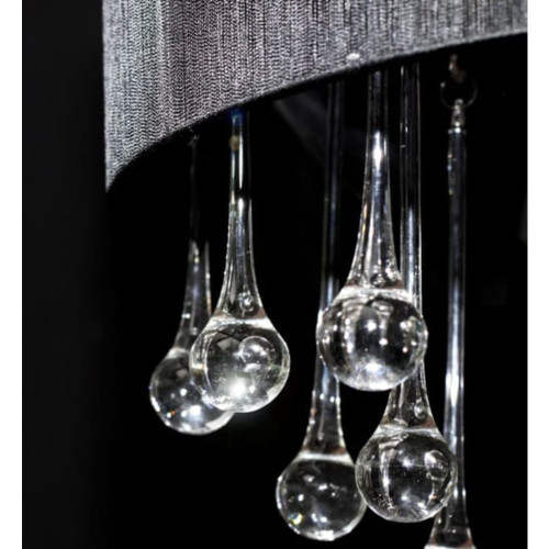 Acest minunat candelabru cu 85 cristale diferite este conceput în totalitate din metal și cristal de sticlă. Atrage cu adevărat toate privirile în orice împrejurare; este destinat uzului privat sau profesional (fără componente de plastic ieftine). Candelabrul are 3 brațe cromate și un abajur negru translucid înconjoară brațele.Coloristica de calitate oferă claritate superioară și strălucire plus un magnific joc de culori.