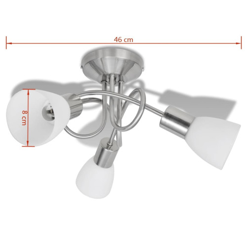 Această lampă poate fi montată cu ușurință pe orice plafon cu o bază de metal de înaltă calitate. Trei tuburi metalice încurcate prezintă un aspect elegant. O lumină minunată va veni prin acele nuanțe delicate de sticlă, luminează fiecare colț al camerei. Această lampă de plafon exclusivă este garantată printr-o simplitate plăcută.