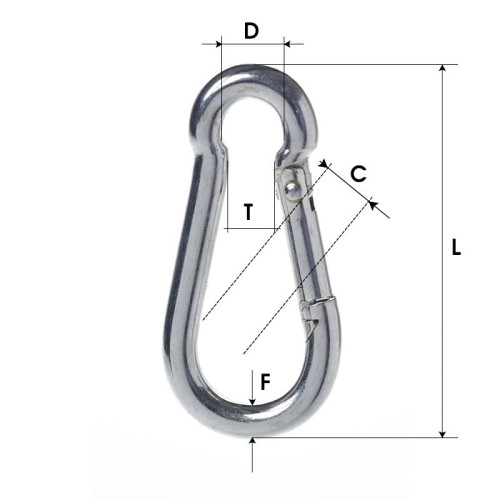 Carabina zincate cu clapeta. F = 8 mm C= 10 mm T = 10 mm D = 12 mm L = 80 mm