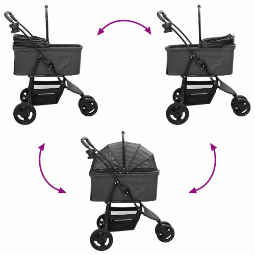 Carucior Pentru Pisici Pliante Ajustabil Negru 78 X 54 X 101 Cm