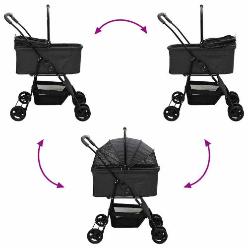 Carucior Pentru Pisici Pliante Ajustabil Negru 81 X 47 X 99 Cm