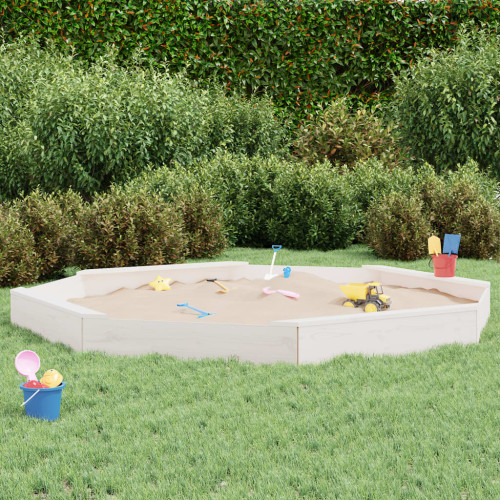 Cutie De Nisip Cu Scaune Octogonale, Alb, Lemn Masiv De Pin