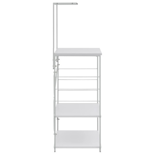 Fabricat din lemn prelucrat, raftul de perete este ușor de curățat cu o cârpă umedă. Structura din oțel îl face rezistent la rugină și îi sporește robustețea. Acest raft are 4 niveluri, care vă oferă spațiu amplu pentru depozitarea lucrurilor precum prăjitoare de pâine, condimente, farfurii și orice alte lucruri doriți. Dulapul include cârlige pentru accesorii laterale, ceea ce îl face convenabil pentru agățarea unor unelte de gătit. De asemenea, îl puteți folosi în camera de zi sau în birou pentru a vă expune obiectele de colecție, rame foto etc.