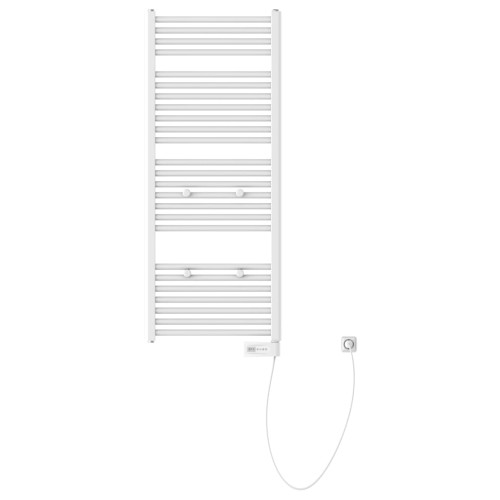 Radiatorul cu dimensiunile 50 x 120 cm este realizat din oțel vopsit electrostatic de culoare albă. Caloriferul de perete necesită doar o conexiune la curent pentru funcționare și poate fi instalat cu ușurință în baie. De asemenea, include un temporizator pentru un plus de confort.