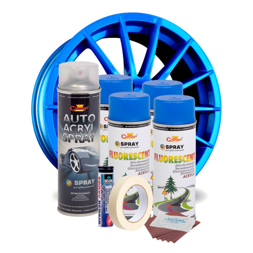Kit Complet Reparatie Si Vopsire Jante Culoare Albastru Fluorescent, V4