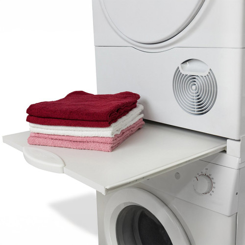 Fabricat dintr-o rama robusta din aluminiu acoperita electrostatic, kitul de suprapunere uscator si masina de spalat suporta o greutate de pana la 150 kg, oferind stabilitate si siguranta in utilizare. Polita incorporata, cu o capacitate de sustinere de 20 kg, este ideala pentru depozitarea detergentului, a accesoriilor de spalat sau pentru plierea rufelor. O alegere excelenta pentru maximizarea spatiului vertical, fara compromisuri la capitolul confort sau accesibilitate.