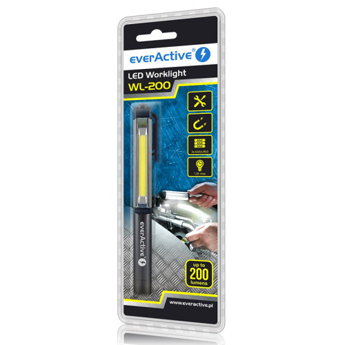 WL-200 este o lanternă de inspecție/atelier foarte mică, dintr-o singură bucata, de la marca Everactive. Fluxul luminos maxim de 200 lumeni oferă o iluminare excelentă a spațiului de lucru chiar și în întuneric complet.