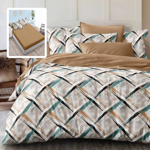 Lenjerie de pat finet 6 piese, cearceaf pat cu elastic, cearceaf pilota 200x230, 2 fete perna 50x70, 2 fete perna 70x70, Extra HF6P214