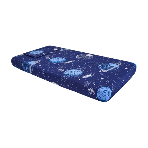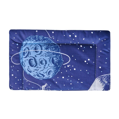 Lenjerie patut bebe,, cearceaf pat 60x120x10 cu elastic, cearceaf pilota 80x110, perna joasa 20x35, Comete Cosmos