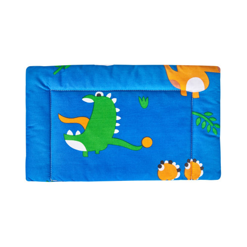 Lenjerie patut bebe,, cearceaf pat 60x120x10 cu elastic, cearceaf pilota 80x110, perna joasa 20x35, Dinozauri