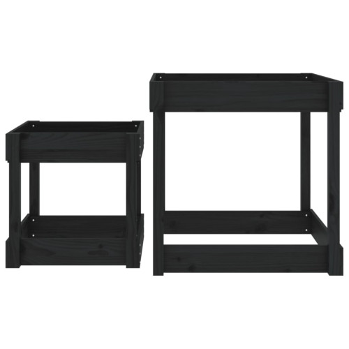 Mese Pentru Nisip, 2 Buc., Negru, Lemn Masiv De Pin