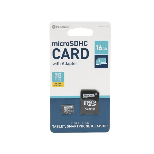 Card microSD cu adaptor, capacitate 16GB, clasa 10, marca Platinet