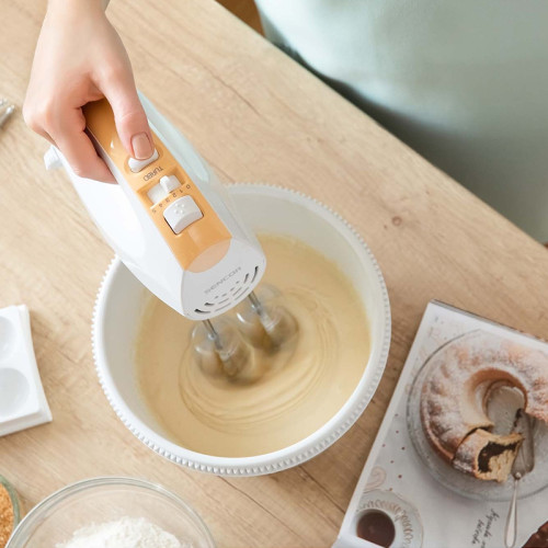 Mixerul de mână Sencor SHM 5330 este echipat cu 5 nivele și un buton turbo și o putere de 300 W. Datorită suportului rotativ pentru bol, puteți pregăti ușor și simplu ingredientele. Este silențios în timpul utilizării, dar oferă totuși performanțe maxime și datorită mânerului ergonomic, garantează o prindere sigură. Poti face prajituri cu aluat mai delicate, usoare, cu ajutorul batoanelor metalice, si poti amesteca paine irezistibila si paste traditionale cu bratele metalice de framantat. Tijele de amestecare pot fi spălate cu ușurință în mașina de spălat vase.