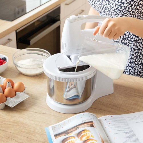Există nenumărate rețete diferite, așa că de ce să nu încerci ceva nou și mai provocator? Cu suportul practic cu cap rabatabil si vasul de 3,5 litri, nu trebuie sa-ti misti mainile. Tot ce ai nevoie sunt ingredientele potrivite și puterea potrivită! Mixerul de mână Sencor prelucrează uniform conținutul întregului bol, fără bucăți sau resturi!