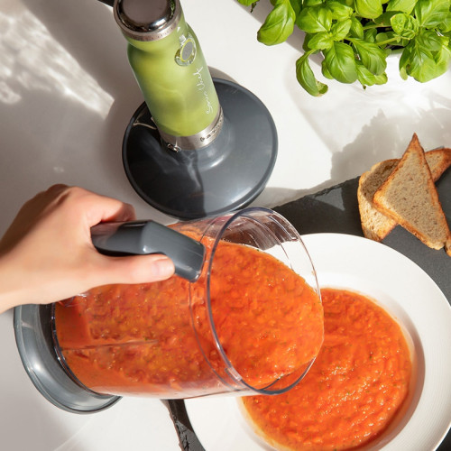 Blenderul sencor shb 5600gg vă poate ajuta să pregătiți rapid supe cremă, sosuri și alimente pentru copii. Motorul de 1200 W este echipat cu o functie de viteza variabila. Lamele de tocat bazate pe tehnologia quad blade din titan sunt potrivite si pentru prepararea mancarurilor calde. Mânerul proiectat ergonomic garantează o prindere sigură și confortabilă. Paharul de amestec cu capac de 800 ml poate fi folosit pentru a procesa cantități mari de materii prime sau chiar poate fi folosit ca ceașcă de măsurat și există și un recipient de 1250 ml, care este excelent pentru tocat.