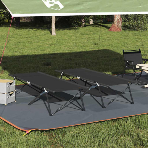 Pat Pliabil Pentru Camping Manual 2 Pcs Negru 206 X 76 X 74 Cm