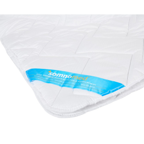 Pilota ideala pentru cei care sufera de alergii. Pilota Somnomed tratata antimicrobian este prima pilota din Romania, disponibila la un pret accesibil, ce se adreseaza tuturor persoanelor care sufera de alergii. Pilota asigura protectie permanenta, reala si dovedita impotriva microbilor. Proprietatea inovatoare a pilotei Somnomed este data de efectul antimicrobian multumita tratamentului dezvoltat, testat si certificat in laboratoarele Rudolf Grup din Germania. Umplutura din fibre speciale conjugate 3D asigura circulatia facila a aerului si o elasticitate imbunatatita a pilotei. Umplutura este tratata termic si stabilizata mecanic, ceea ce inseamna ca pilota isi va pastra proprietatile initiale o mare perioada de timp, chiar dupa foarte multe spalari sau dupa ce a fost vidata un timp indelungat.