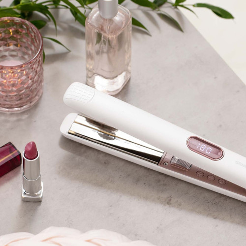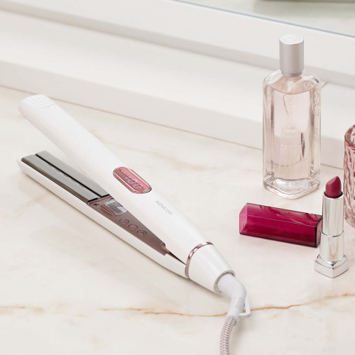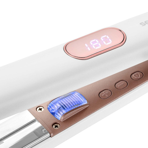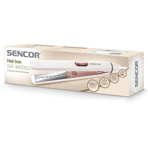 Plăcile de fier acoperite cu titan ale aparatului de îndreptat părul Sencor SHI 4400GD sunt concepute pentru a obține un efect maxim de netezire pe toată lungimea suprafeței de îndreptat, oferind astfel o strălucire strălucitoare părului. Datorită designului subțire al dispozitivului, pot fi realizate cu ușurință nu numai coafuri perfect netede, ci și ondulate. Incalzirea rapida - pana la 230° C - este asigurata de tehnologia PTC. Cablul rotativ la 360° oferă protecție împotriva încurcării și ruperii.