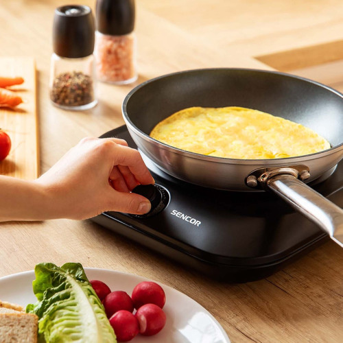 Plita are o putere nominală maximă de 1200 W. În câteva minute, suprafața netedă din sticlă ceramică se încălzește până la 500 °C, ceea ce înseamnă că nu este nicio problemă să încălziți o tigaie până la 250 °C. Acest lucru îl face potrivit pentru prăjit, sote, fiert sau chiar pentru încălzire. Plita radiantă din sticlă ceramică este compatibilă cu toate tipurile de vase de gătit.