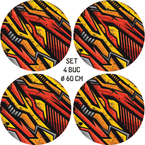 Set 4 Folii Imprimate Outdoor Cu Ecosolvent, Autoadezive, Pentru Decorarea Jantelor Auto, Dimetru 60 Cm, Model Fjt-13