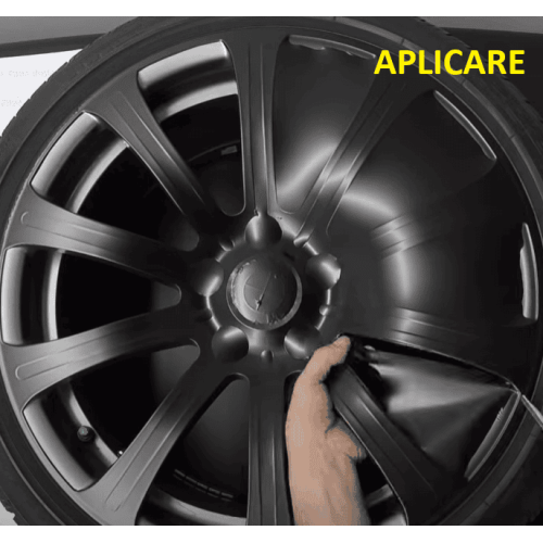 Setul de 4 folii colantare jante este autoadeziv poate fi aplicat pe orice fel de suprafete netede, lucioase, care ofera aderenta adezivului. Inainte de aplicare, se inlatura hartia de suport de pe spatele foliei. Complexitatea montajului difera in functie de curburile jantelo. Pentru montaj este absolut necesar un pistol cu aer cald pentru a intinde folia pentru o aplica pe curburile jantelor iar la finalizarea procesului de aplicare, se decupeaza surplusul de material cu un cutter. Montajul acestui produs nu este la indemana oricui, astfel incat recomandam montarea setului de folii intr-un atelier specializat.