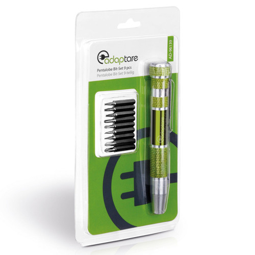 Conține nouă biți: Pentalobe 0,8 mm pentru iPhone / Pentalobe 1,2 mm pentru MacBook Air și Pro / Y-Tri-Wing 2,0 mm