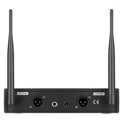 Setul include: receptor, 2 x microfon de mână, adaptor de curent alternativ, cablu de 6,3 mm,