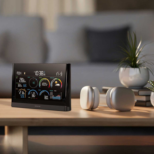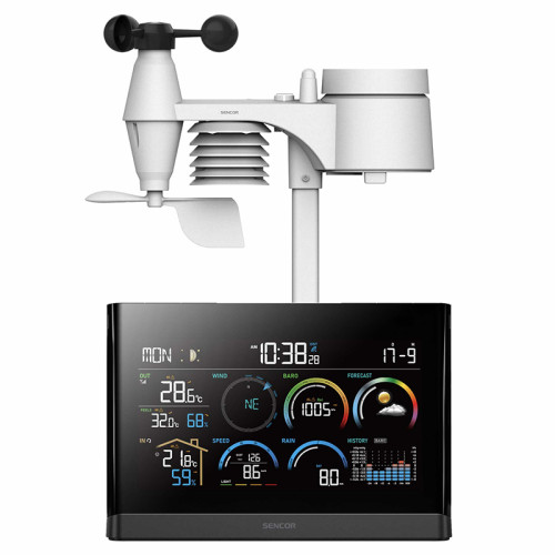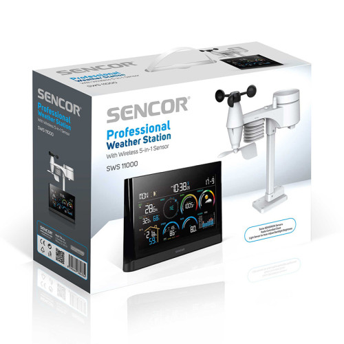 SENCOR SWS 11000 aduce meteorologia avansată în confortul casei tale. Fie că ești grădinar, pasionat de vreme sau pur și simplu vrei să fii la curent cu noutățile, vei fi impresionat de gama largă de funcții pe care le oferă această stație. SWS 11000 este echipată cu un afișaj color TRUE BLACK de 7,4" cu 3 niveluri de luminozitate. Se ajustează automat la condițiile de iluminare din cameră. Senzorul său wireless 5-în-1 cu senzori Swiss SENSIRION, furnizat împreună cu unitatea principală, permite dispozitivului să monitorizeze temperatura, umiditatea, presiunea, direcția și viteza vântului, precipitațiile și alți factori.
