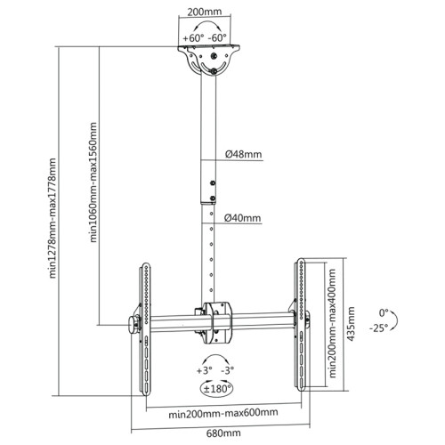 Standard VESA: 200x200, 300x200, 300x300, 400x200, 400x300, 400x400, 600x200, 600x300, 600x400