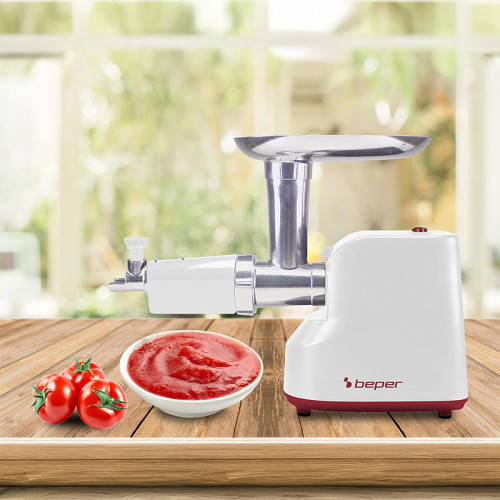 Mașină de tocat carne electrică compactă, perfectă pentru uz casnic de zi cu zi: carnea este tocată simplu, rapid și cu precizie.